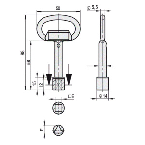 • Paal- / containersleutel driekant 15,5 mm